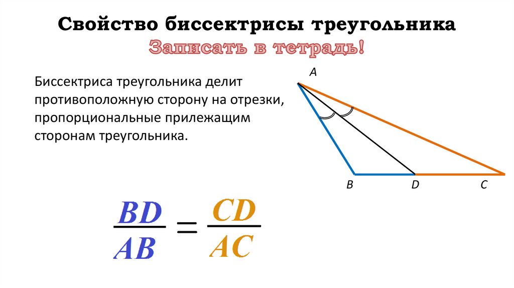 Пропорциональные отрезки исвойство биссектрисы треугольника