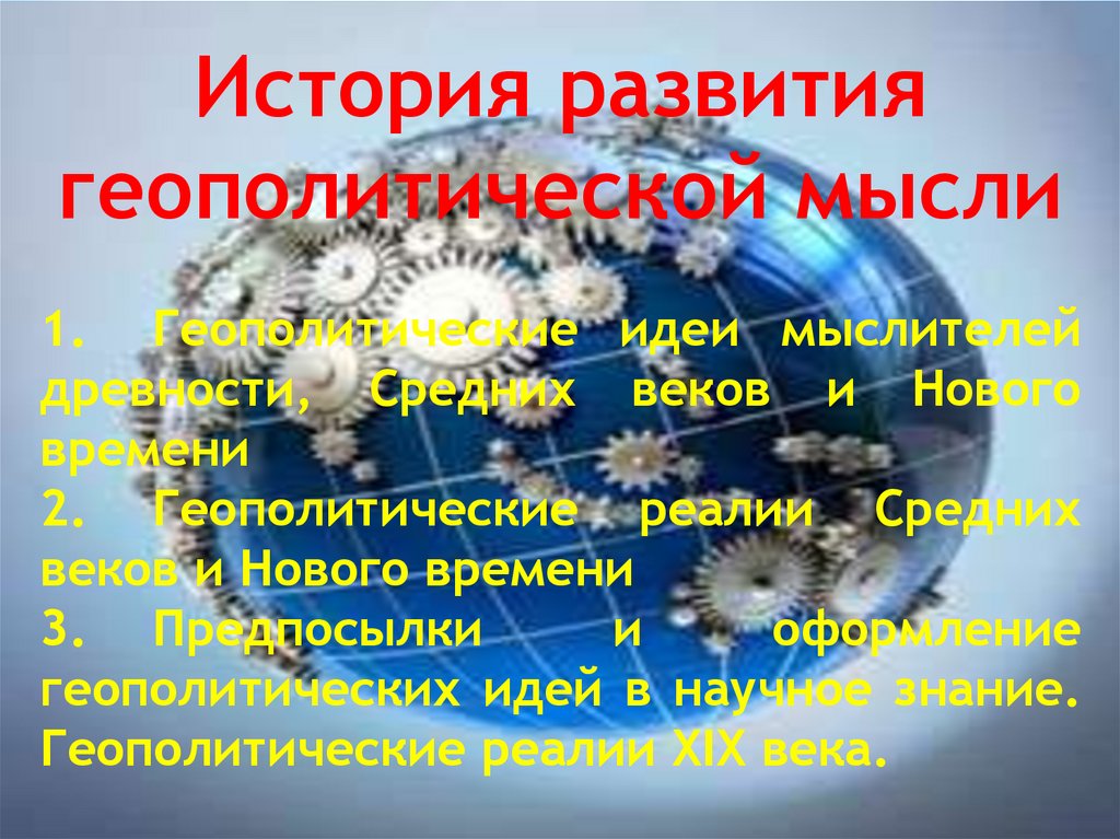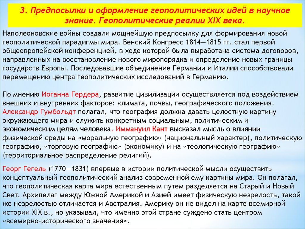 3. Предпосылки и оформление геополитических идей в научноезнание. Геополитические реалии ХIХ века.