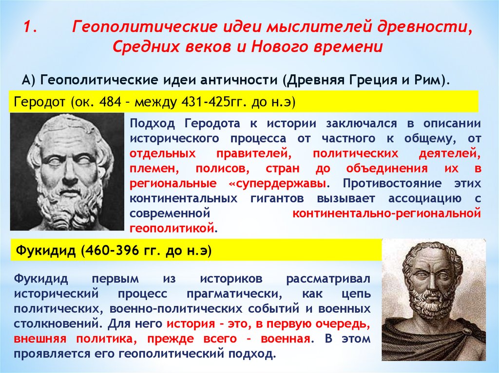 А) Геополитические идеи античности (Древняя Греция и Рим).