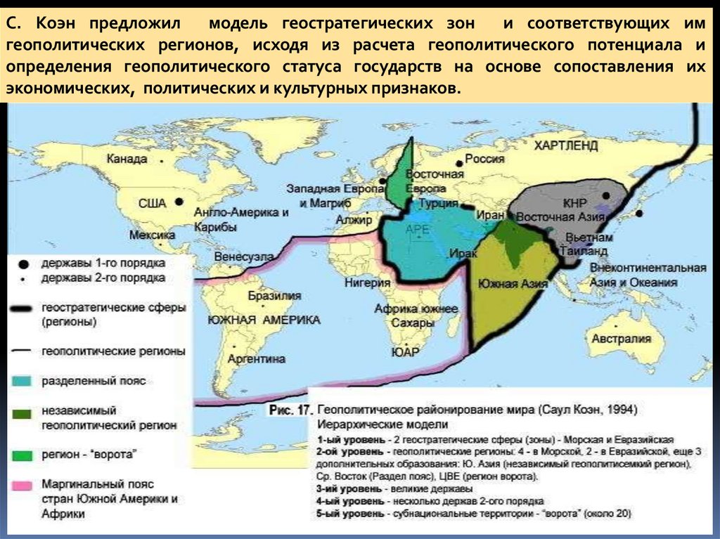 геополитических регионов, исходя из расчета геополитического потенциала и