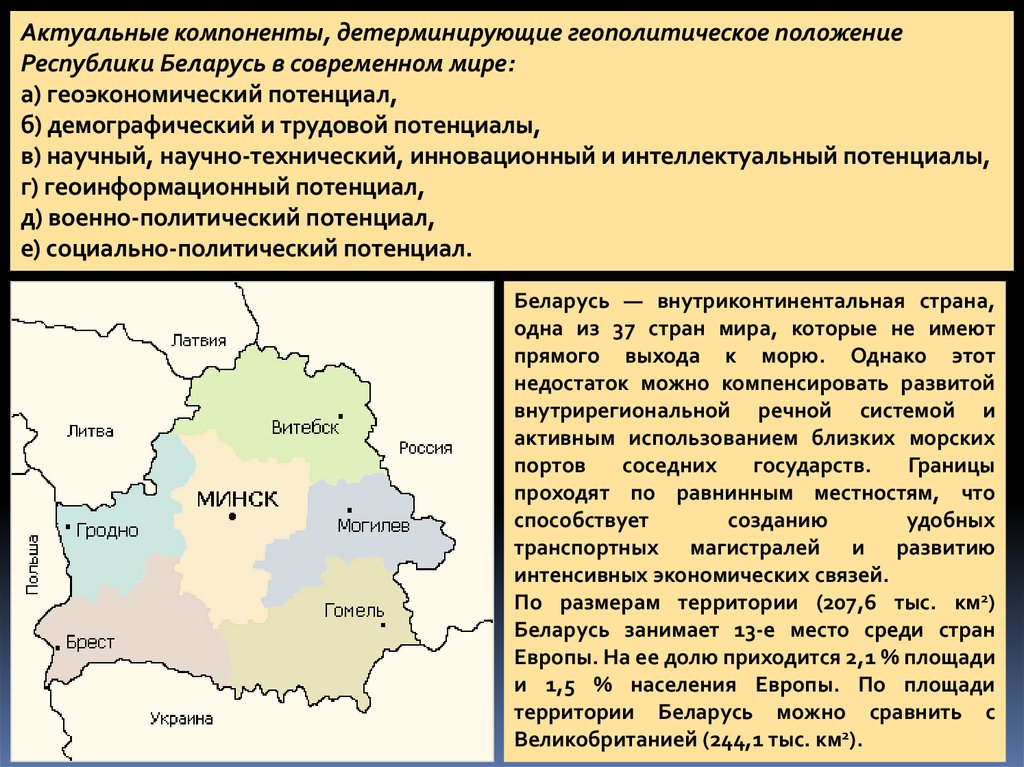 Актуальные компоненты, детерминирующие геополитическое положениеРеспублики Беларусь в современном мире: