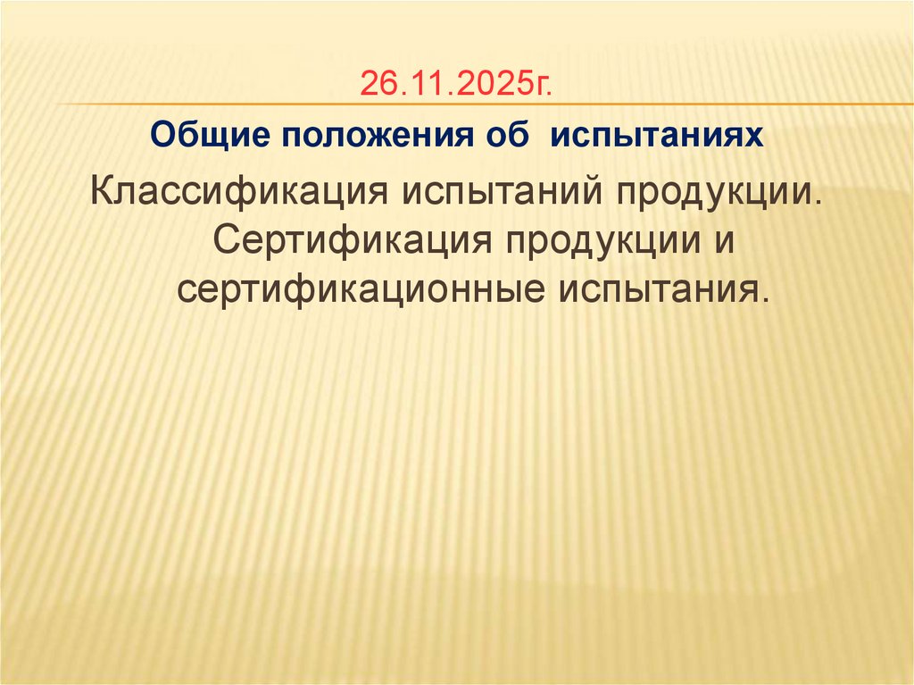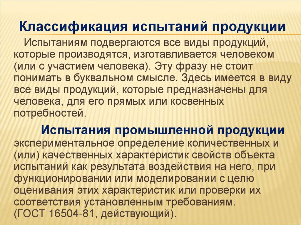 Классификация испытаний продукцииИспытаниям подвергаются все виды продукций,