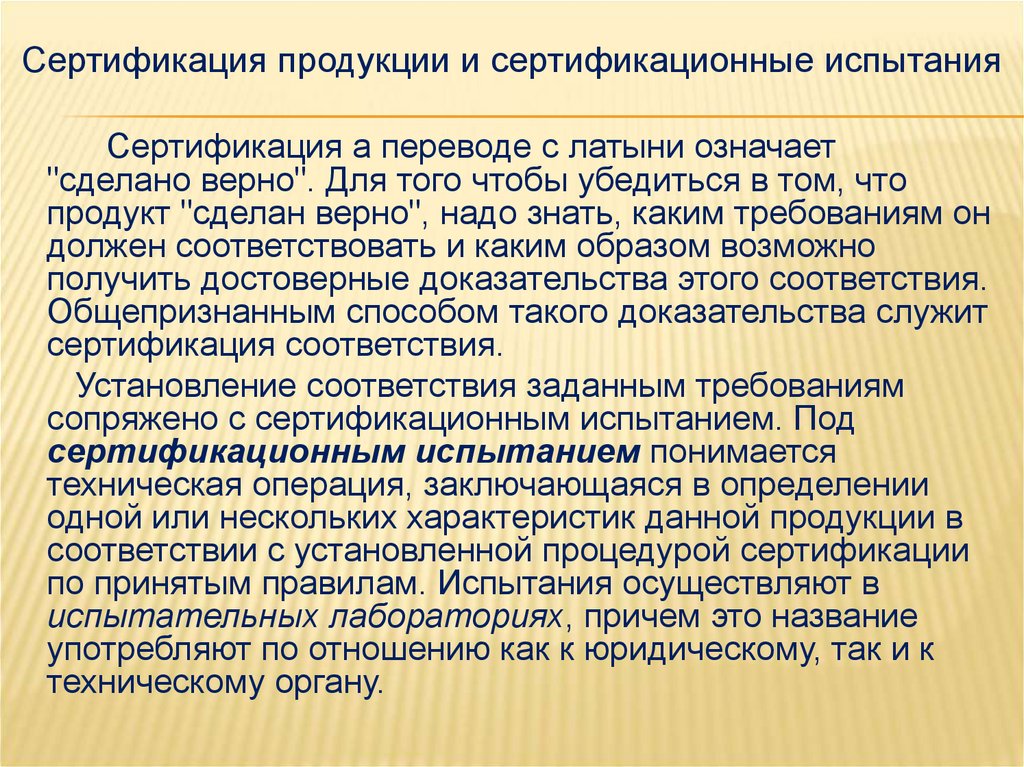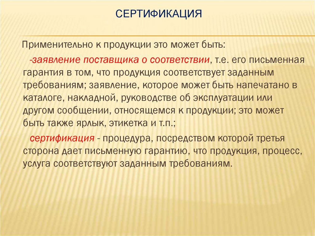 СЕРТИФИКАЦИЯПрименительно к продукции это может быть: