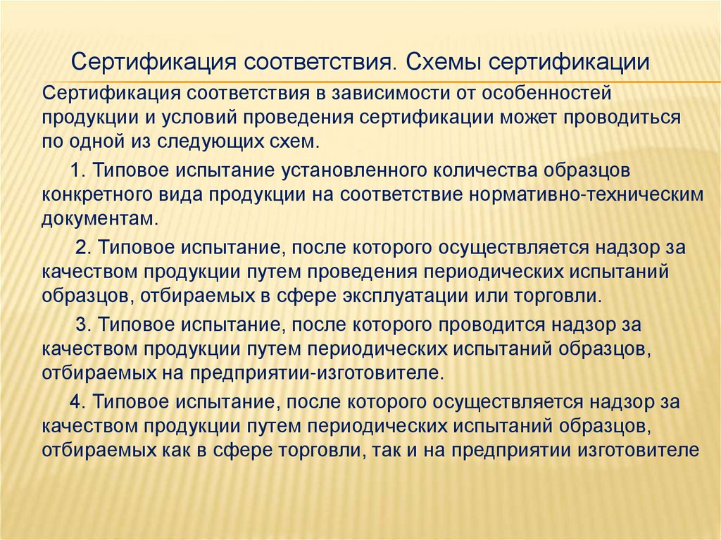 Сертификация соответствия. Схемы сертификацииСертификация соответствия в зависимости от особенностей
