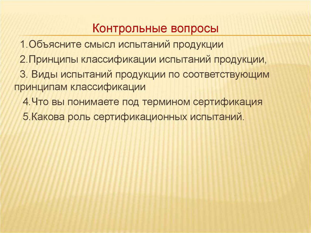 Контрольные вопросы1.Объясните смысл испытаний продукции