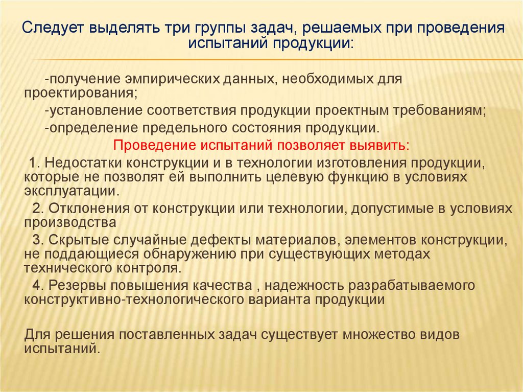 Следует выделять три группы задач, решаемых при проведенияиспытаний продукции:
