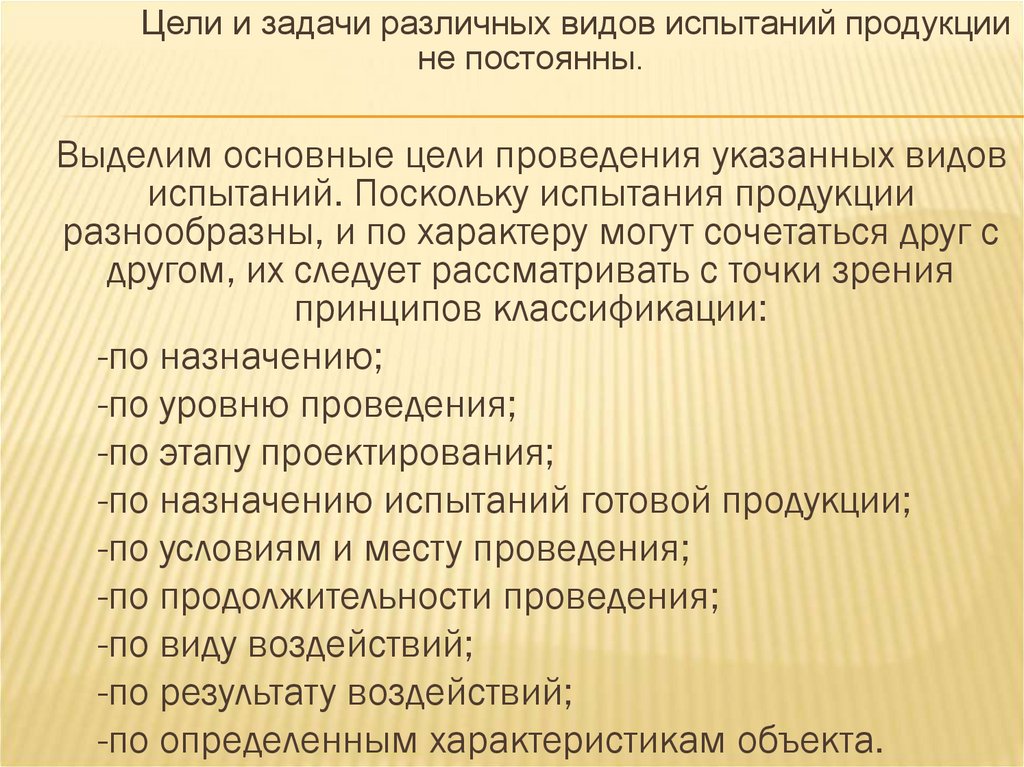 Цели и задачи различных видов испытаний продукциине постоянны.