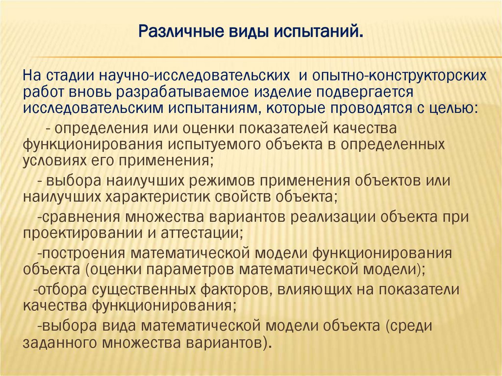 Различные виды испытаний.На стадии научно-исследовательских и опытно-конструкторских