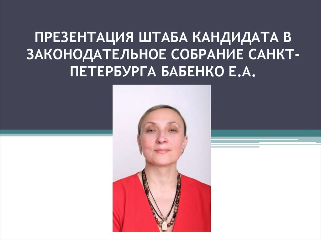 ПРЕЗЕНТАЦИЯ ШТАБА КАНДИДАТА ВЗАКОНОДАТЕЛЬНОЕ СОБРАНИЕ САНКТПЕТЕРБУРГА БАБЕНКО Е.А.