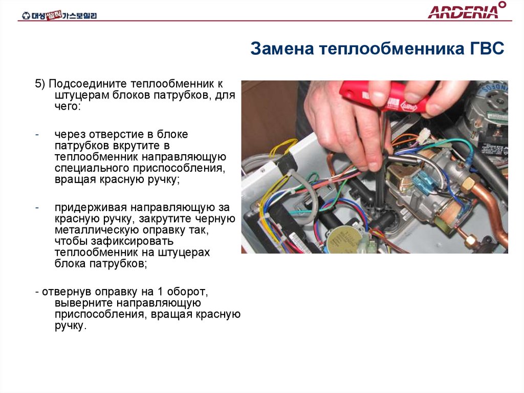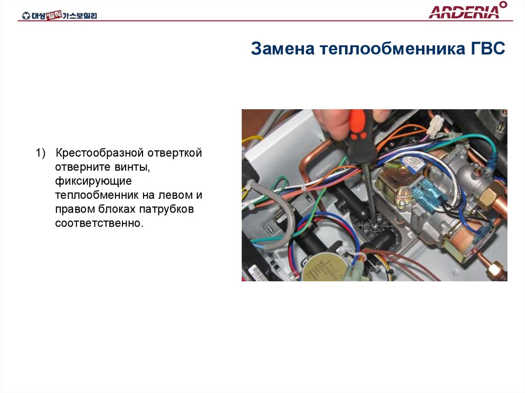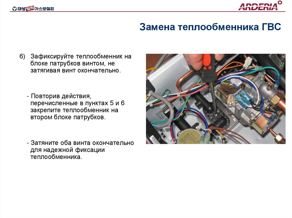 Замена теплообменника ГВС6) Зафиксируйте теплообменник на
