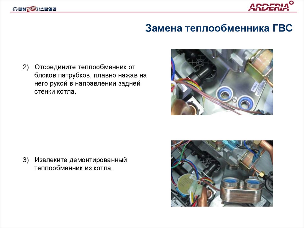 Замена теплообменника ГВС2) Отсоедините теплообменник от