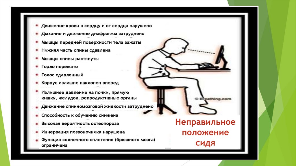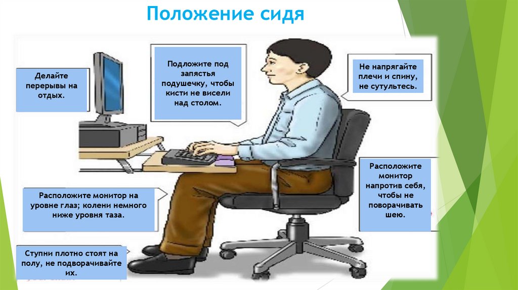 Длительная работа за компьютером часто вызываетболи в шее и в нижней части спины, а также