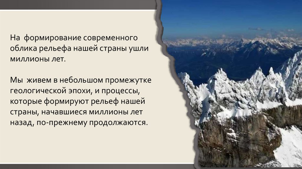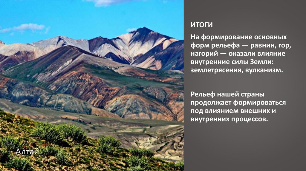 3. Основные формы рельефа России — равнины, горы, нагорья — обязаны своим происхождением внутренним силам Земли, но многие
