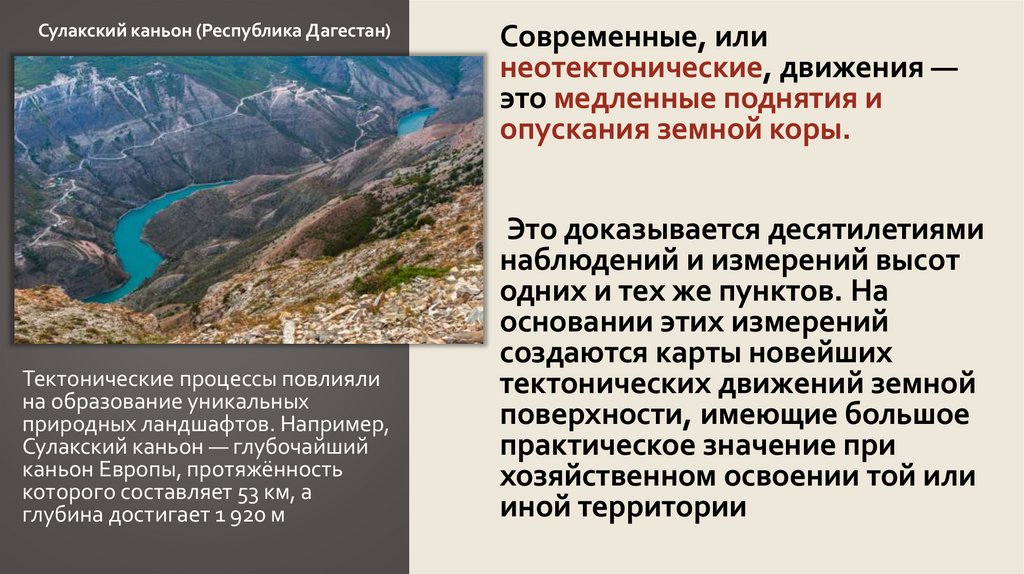Сулакский каньон (Республика Дагестан)Тектонические процессы повлияли