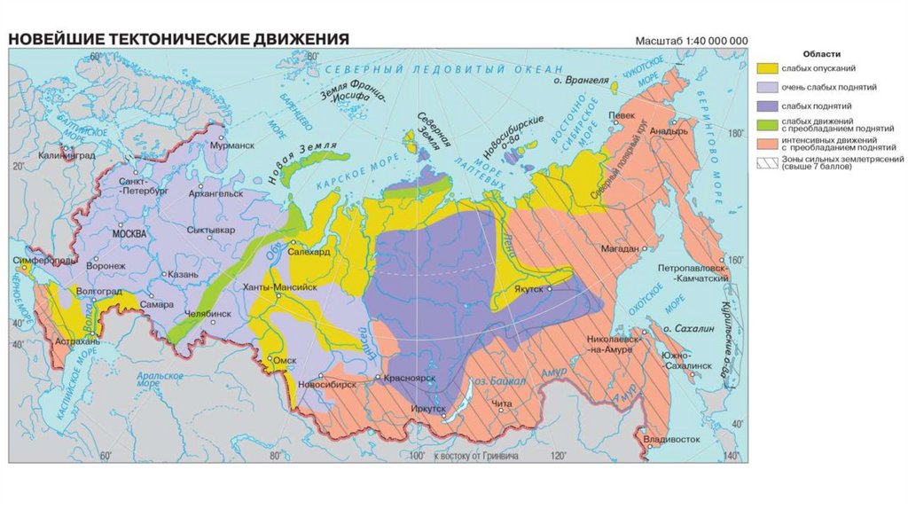 В новейшее время продолжаются тектонические процессы — вертикальные