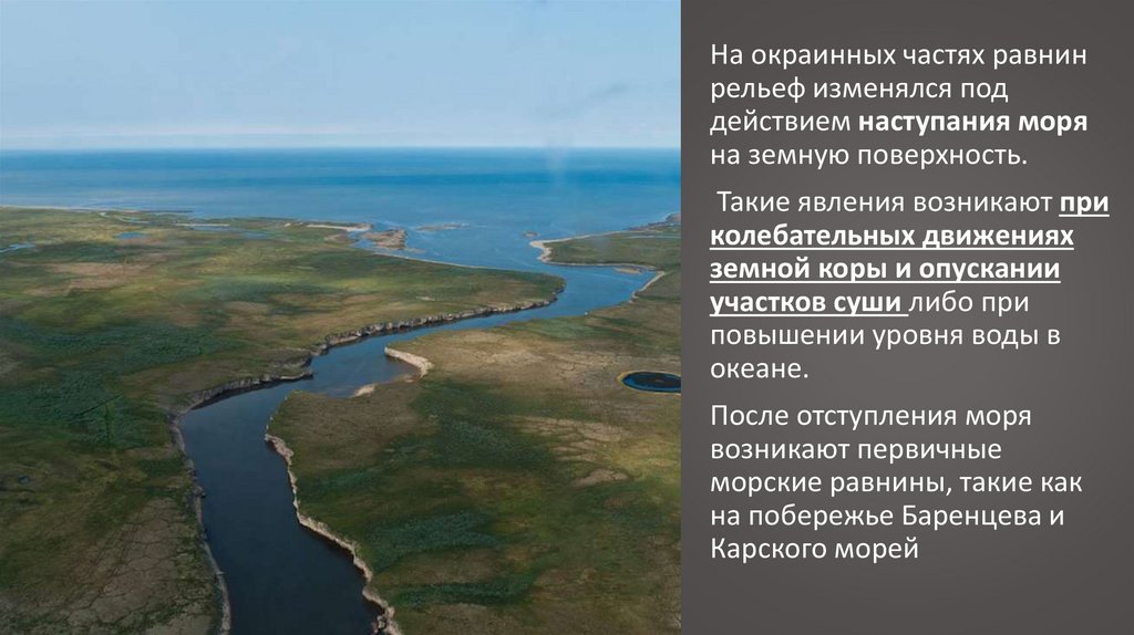 Основные формы рельефа России — равнины, горы, нагорья — обязаны своимпроисхождением внутренним силам Земли, но многие существенные детали