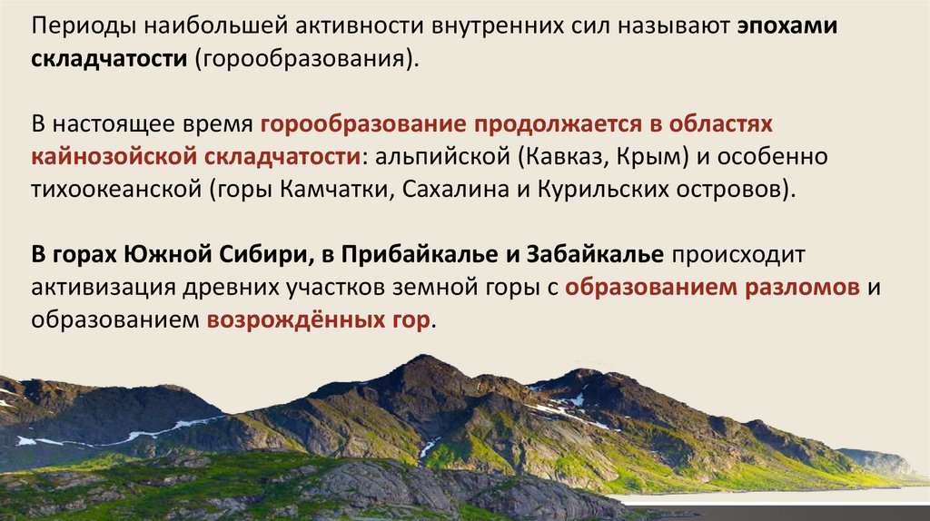 Периоды наибольшей активности внутренних сил называют эпохамискладчатости (горообразования).