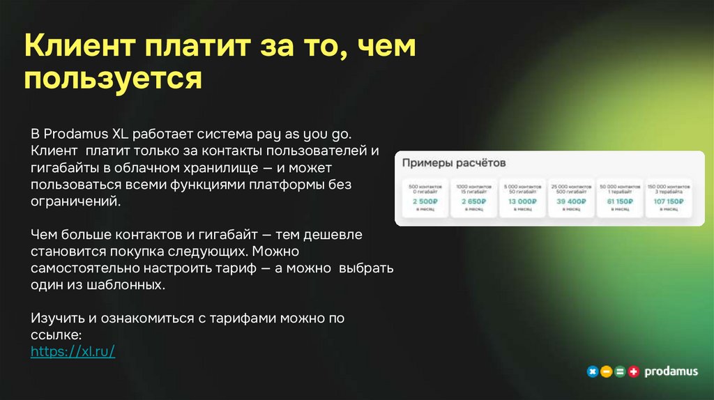 В Prodamus XL работает система pay as you go.
