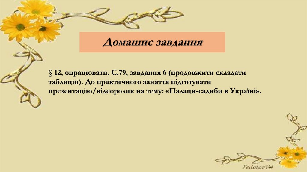 презентацію/відеоролик на тему: «Палаци-садиби в Україні».