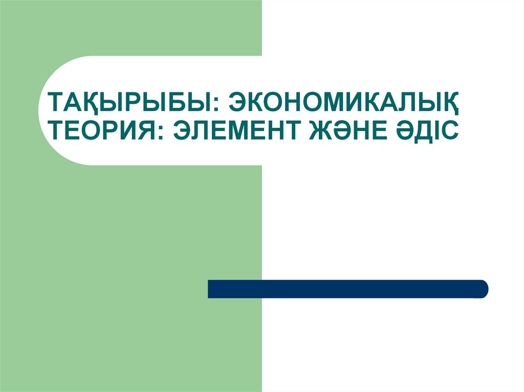 1. ТАҚЫРЫБЫ: ЭКОНОМИКАЛЫҚ ТЕОРИЯ: ЭЛЕМЕНТ ЖӘНЕ ӘДІС