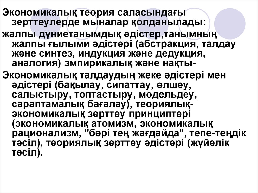 Экономикалық теория жасаған білім мензерттеудің нақты әдістері нақты
