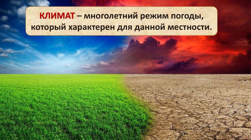 КЛИМАТ – многолетний режим погоды,который характерен для данной местности.