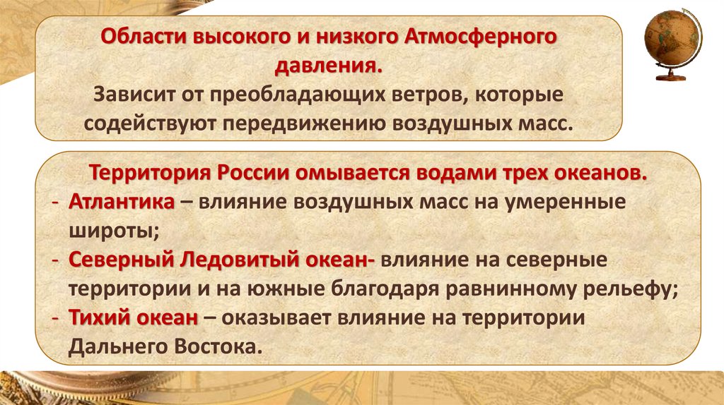 - Воздушные массы с Атлантики и Северного Ледовитого