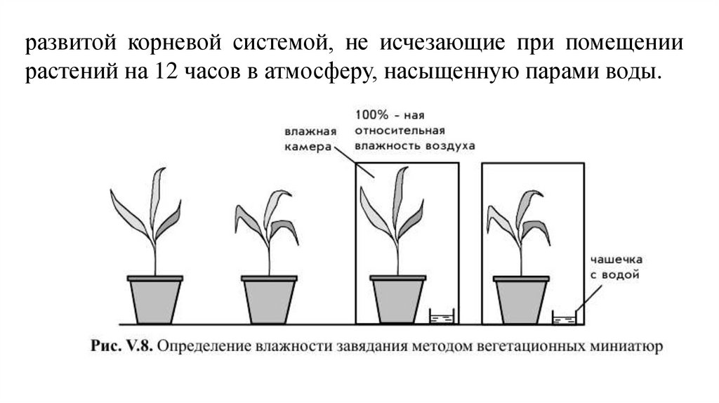 развитой корневой системой, не исчезающие при помещениирастений на 12 часов в атмосферу, насыщенную парами воды.