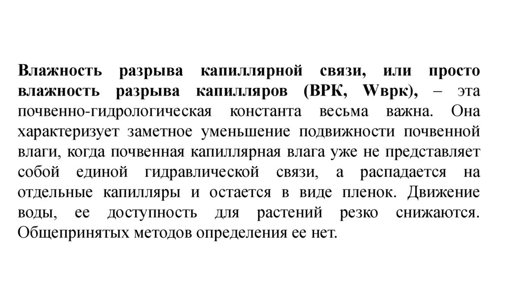 Влажность разрыва капиллярной связи, или простовлажность разрыва капилляров (ВРК, Wврк), – эта
