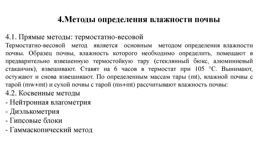 4.Методы определения влажности почвы4.1. Прямые методы: термостатно-весовой