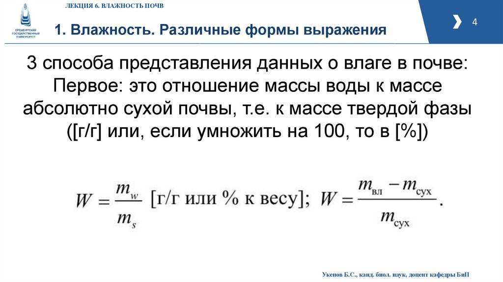 ЛЕКЦИЯ 6. ВЛАЖНОСТЬ ПОЧВ1. Влажность. Различные формы выражения