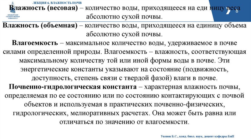 ЛЕКЦИЯ 6. ВЛАЖНОСТЬ ПОЧВ8