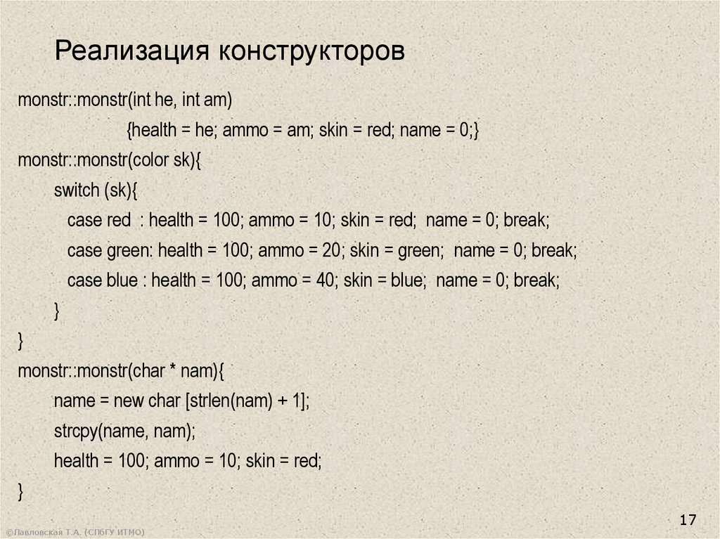 • конструкторы, определяющие, как инициализируются