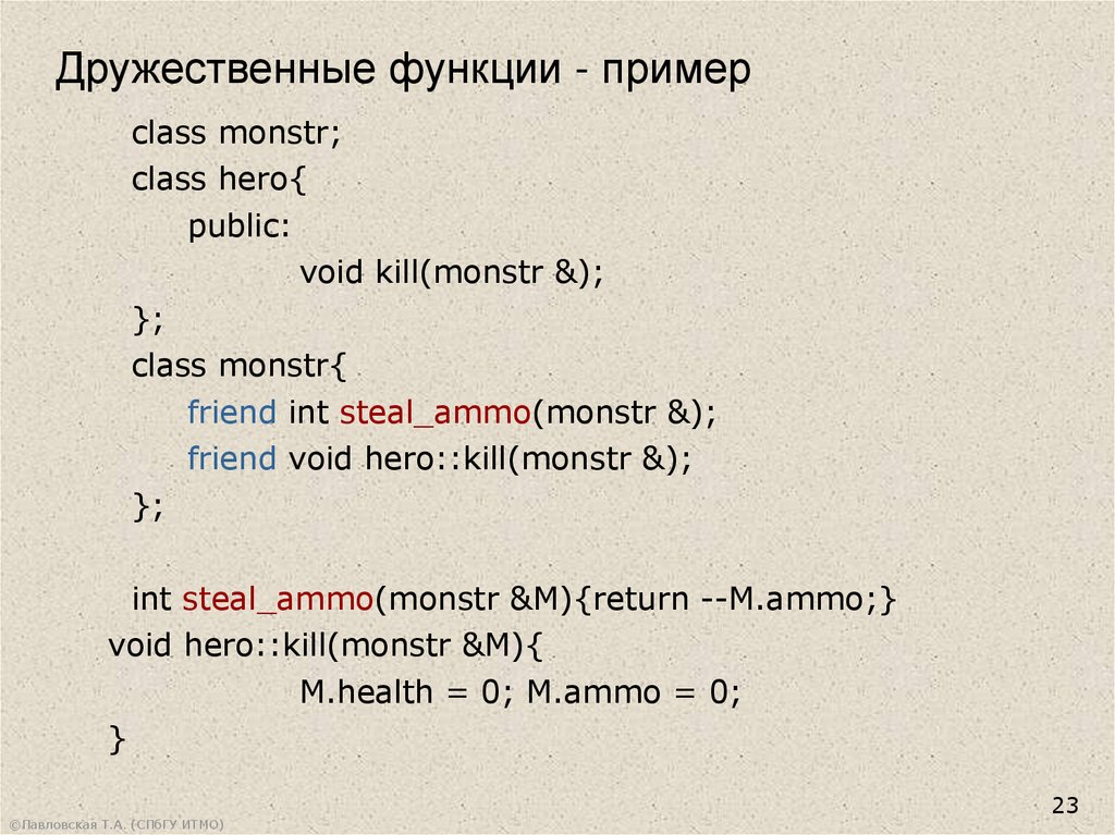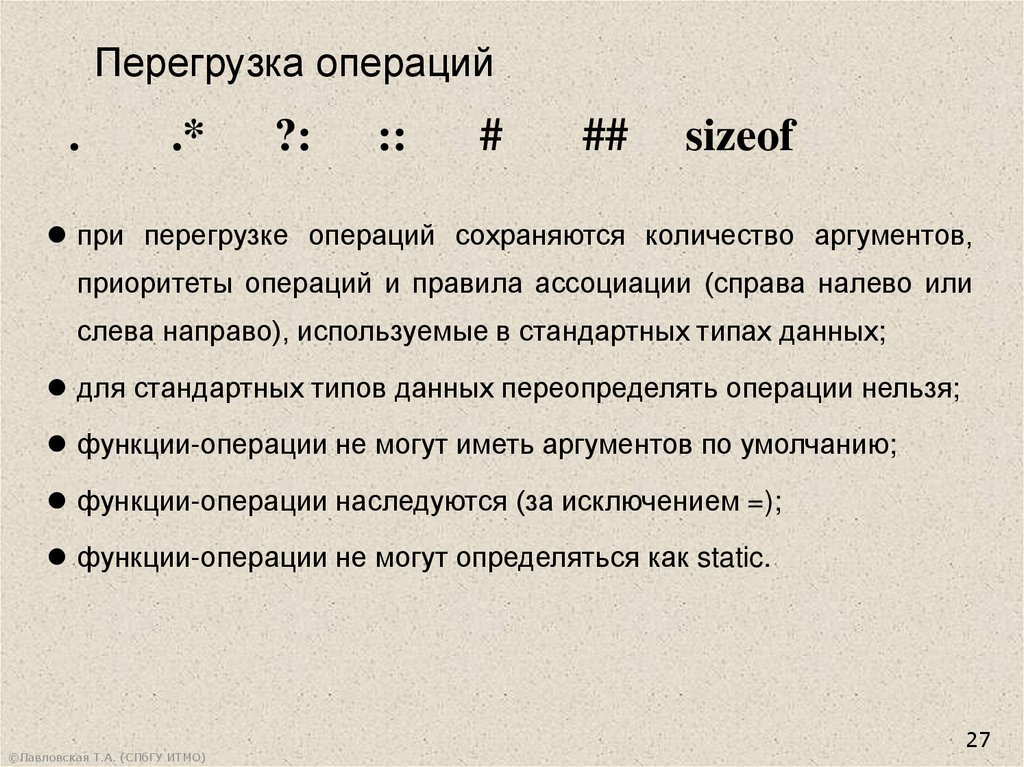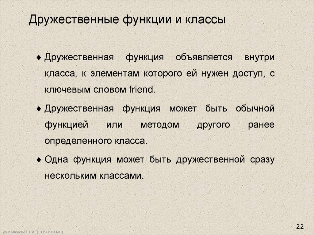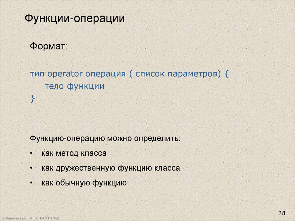 операции. Дружественные функции и