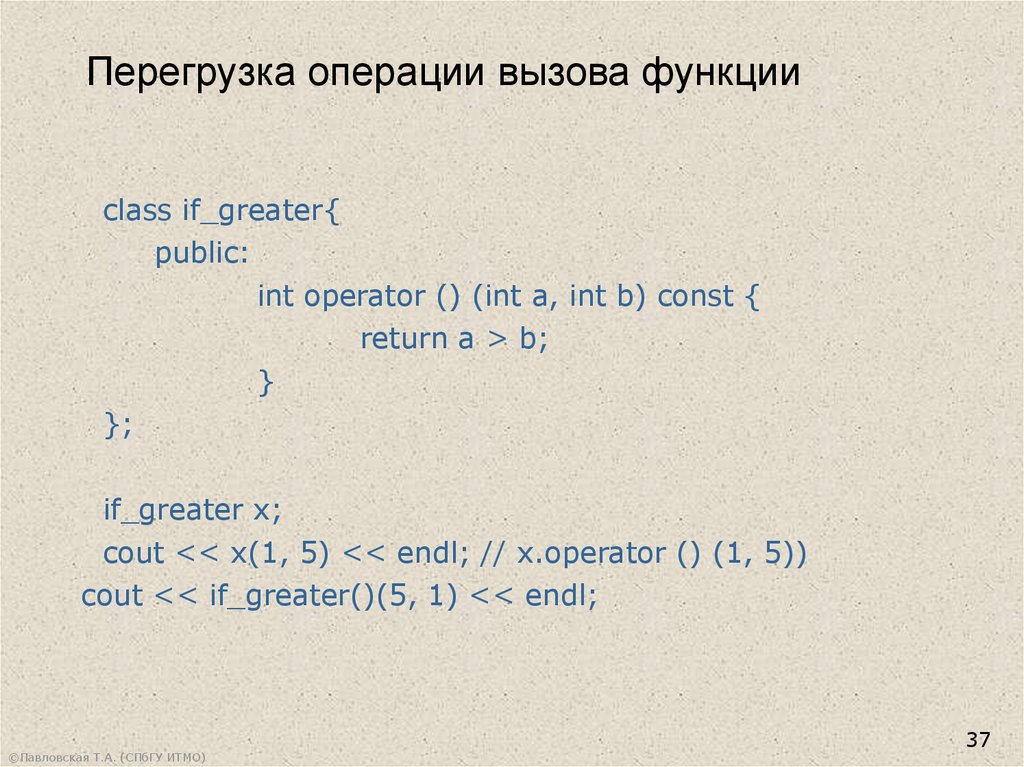 Перегрузка операции вызова функцииclass if_greater{