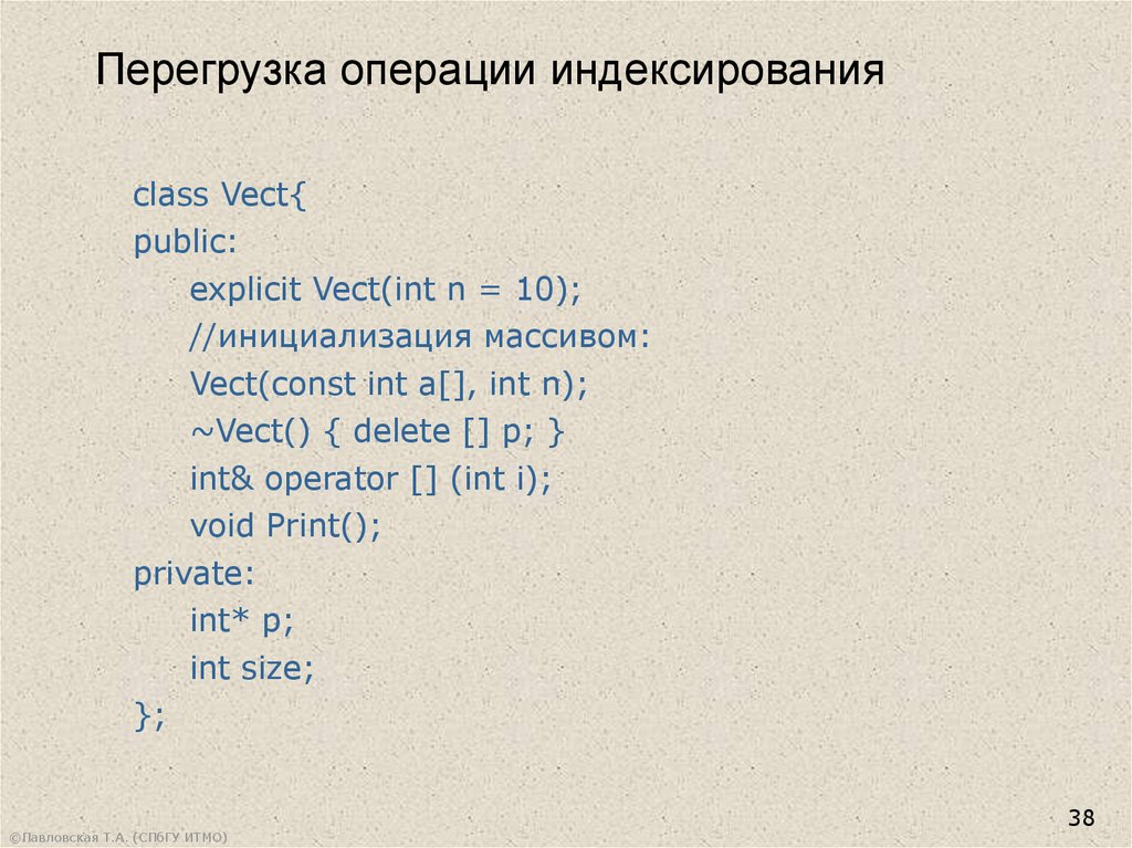 Перегрузка операции индексированияclass Vect{