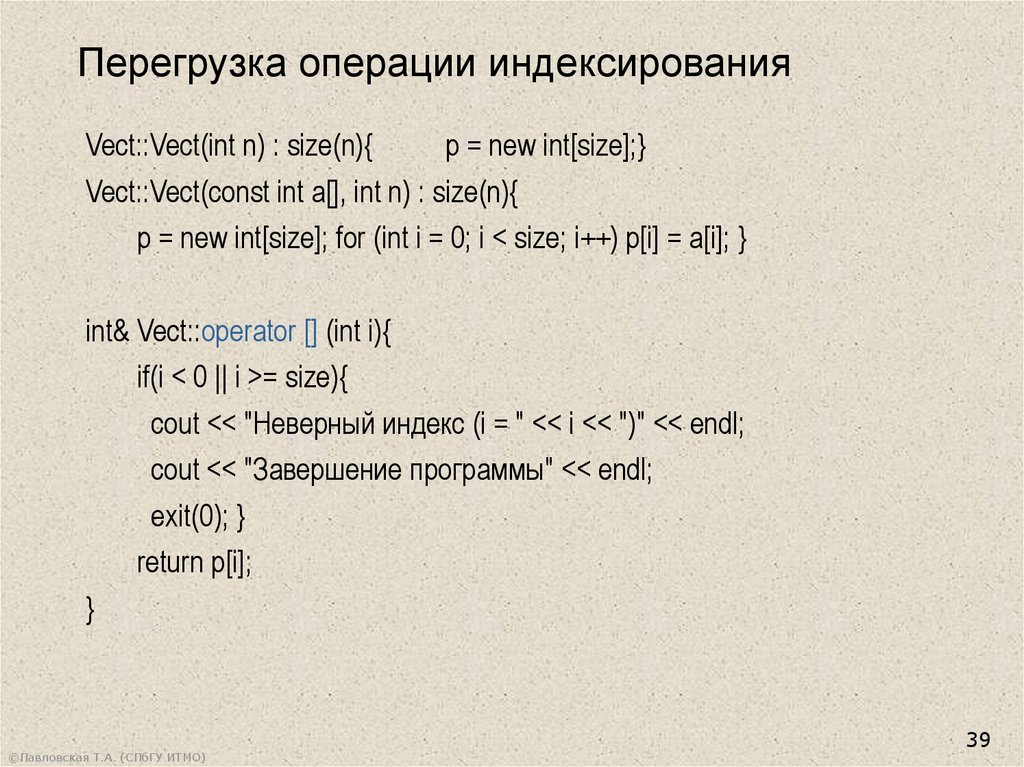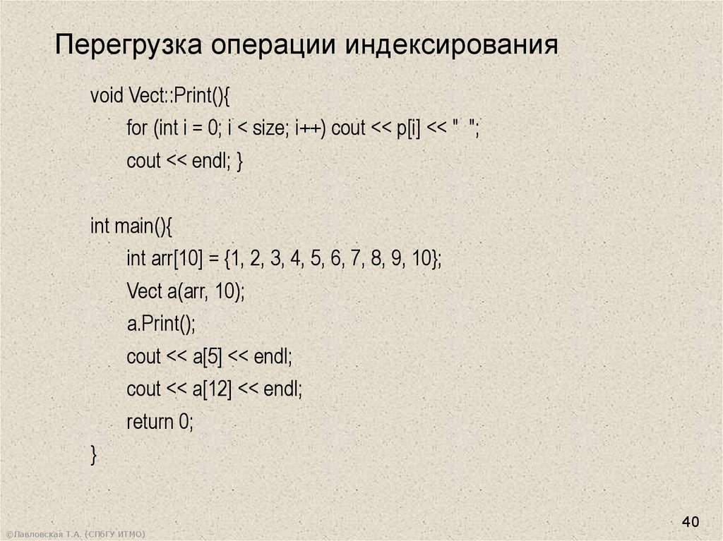 Перегрузка операции индексированияvoid Vect::Print(){