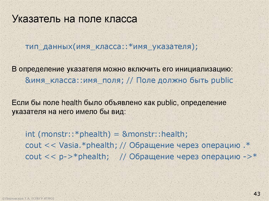 cout << Vasia.*phealth; // Обращение через операцию .*