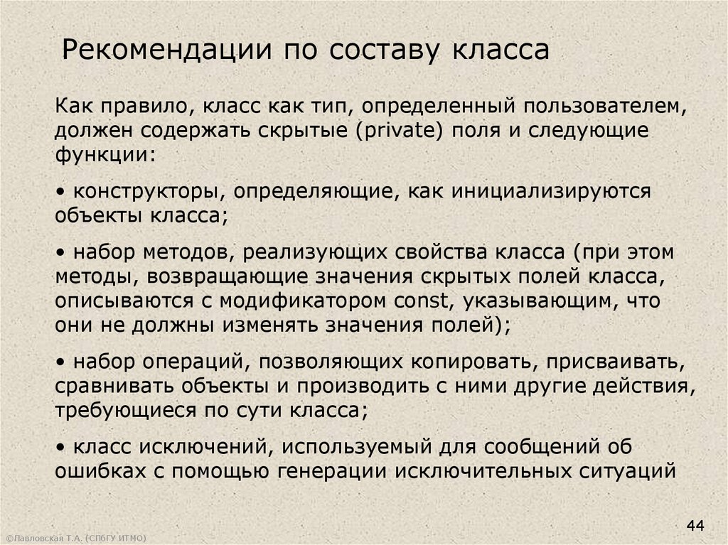 Рекомендации по составу классаКак правило, класс как тип, определенный пользователем,