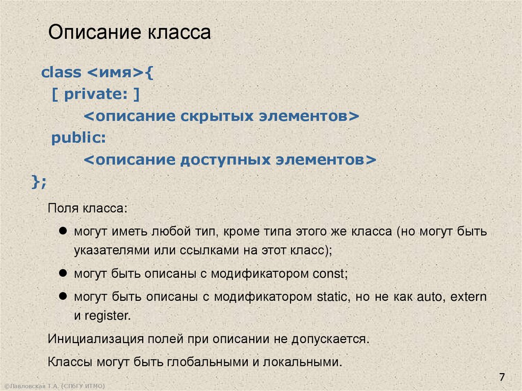 Описание классаclass <имя>{