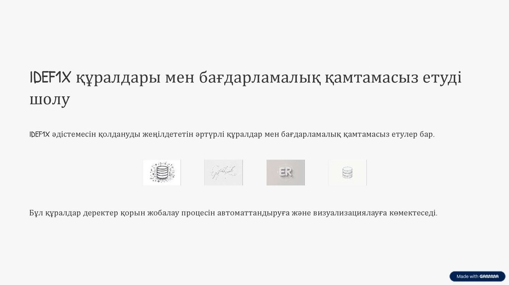 Бұл құралдар деректер қорын жобалау процесін автоматтандыруға және визуализациялауға көмектеседі.