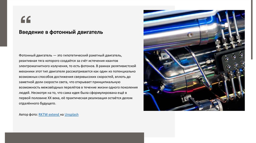 Введение в фотонный двигательФотонный двигатель — это гипотетический ракетный двигатель,