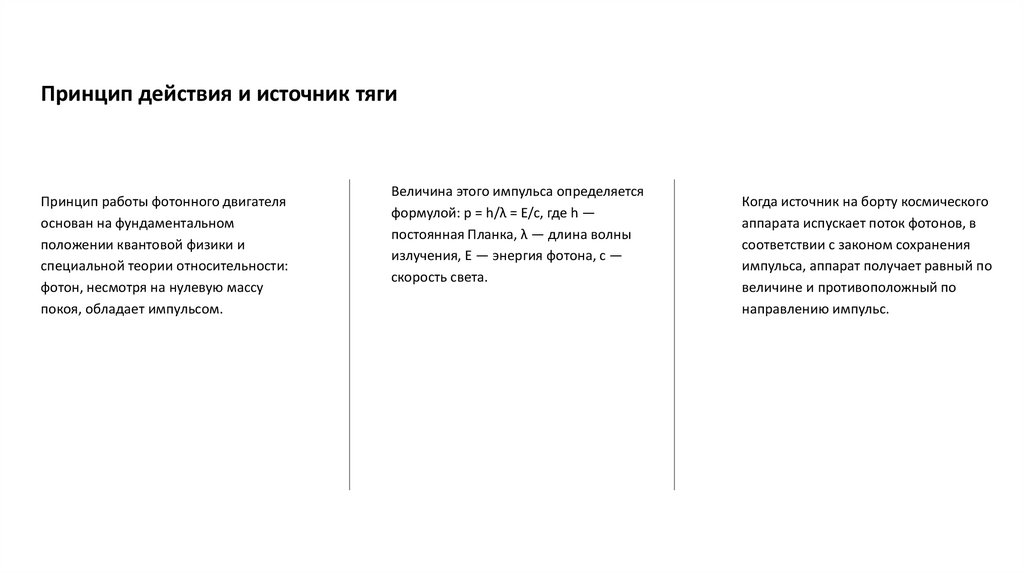 Принцип действия и источник тягиПринцип работы фотонного двигателя