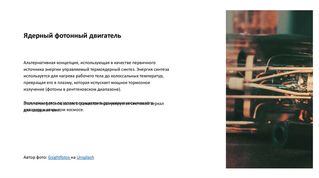 Ядерный фотонный двигательАльтернативная концепция, использующая в качестве первичного