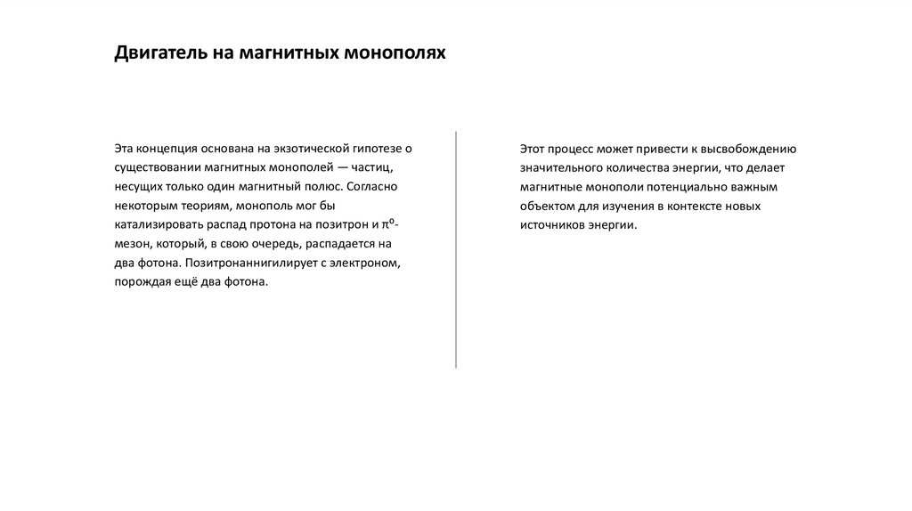 Двигатель на магнитных монополяхЭта концепция основана на экзотической гипотезе о