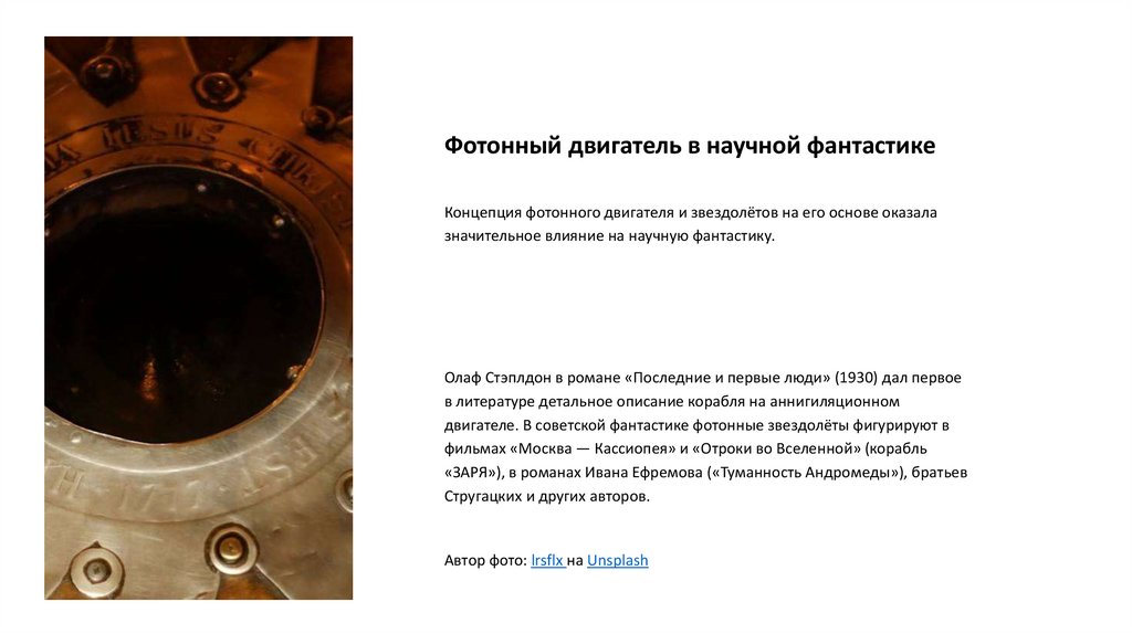 двигателе. В советской фантастике фотонные звездолёты фигурируют в