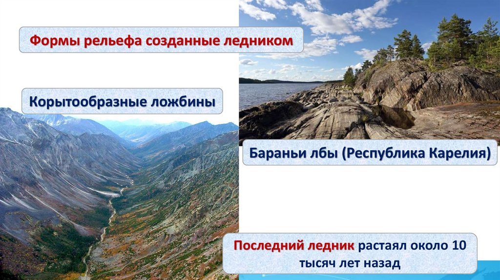 Формы рельефа созданные ледникомКорытообразные ложбины