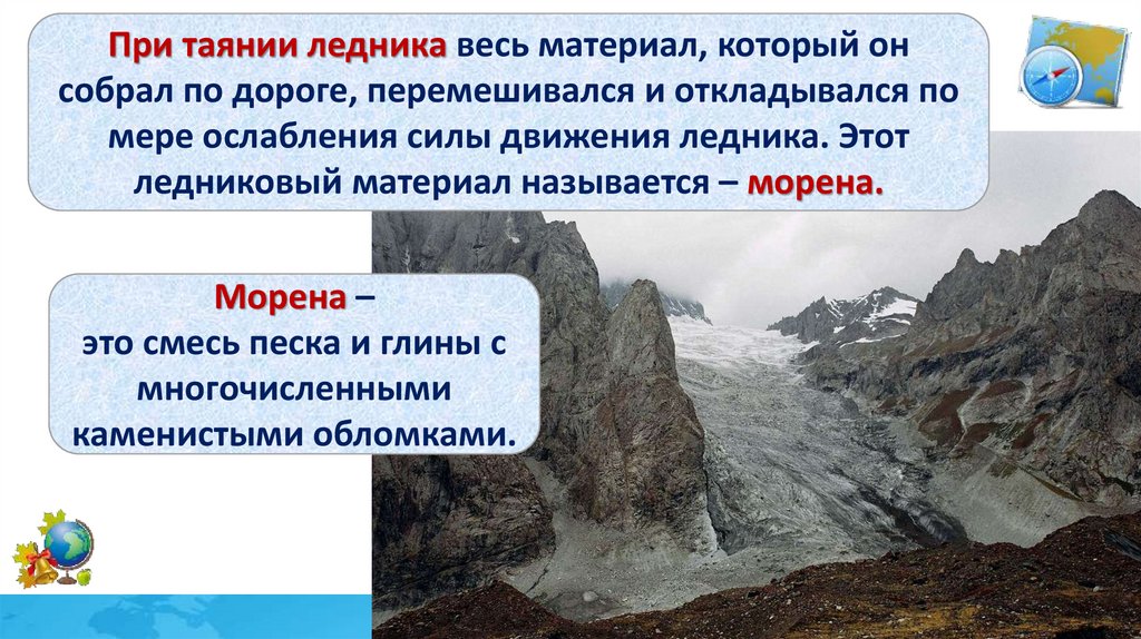 При таянии ледника весь материал, который онсобрал по дороге, перемешивался и откладывался по