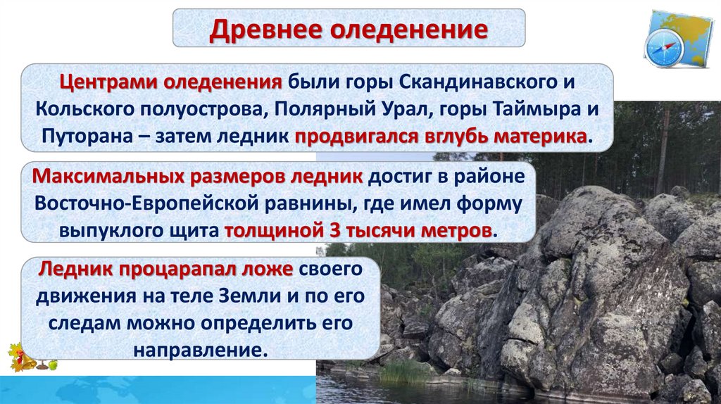 Древнее оледенениеЦентрами оледенения были горы Скандинавского и