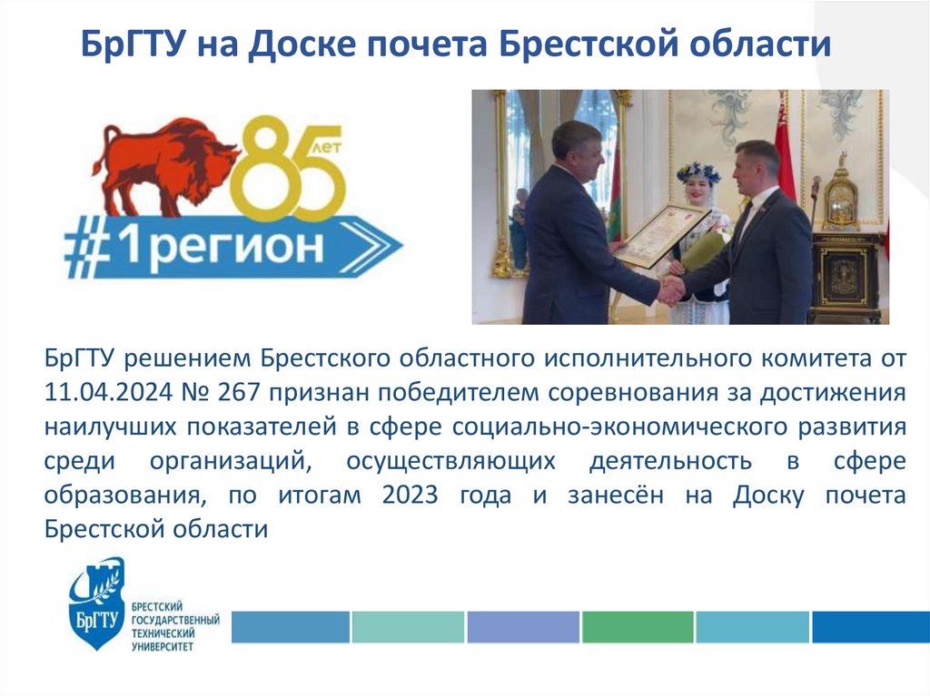 БрГТУ на Доске почета Брестской областиБрГТУ решением Брестского областного исполнительного комитета от